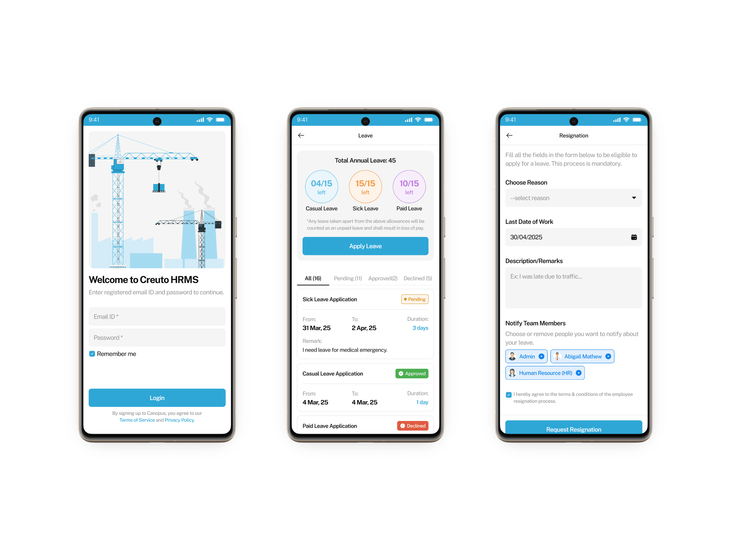 • Helps track when employees come to work, take leave, or move in and out of the company.