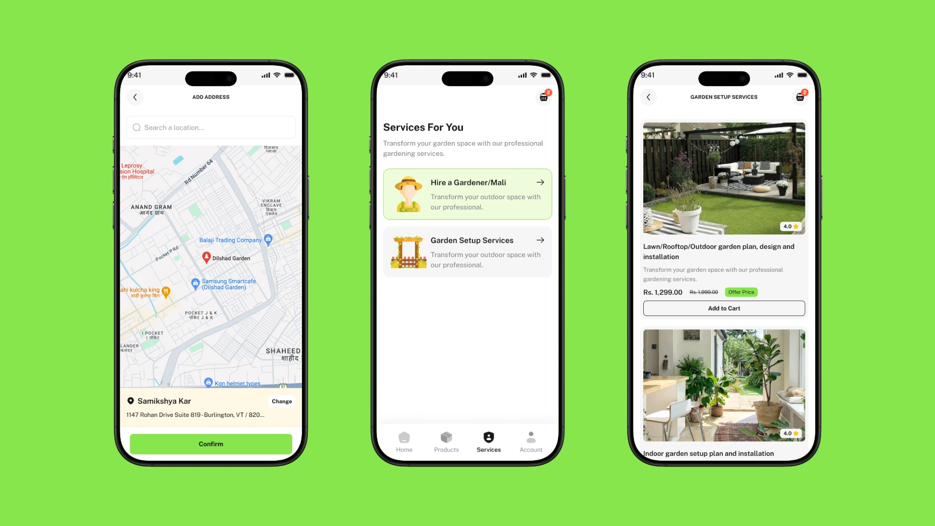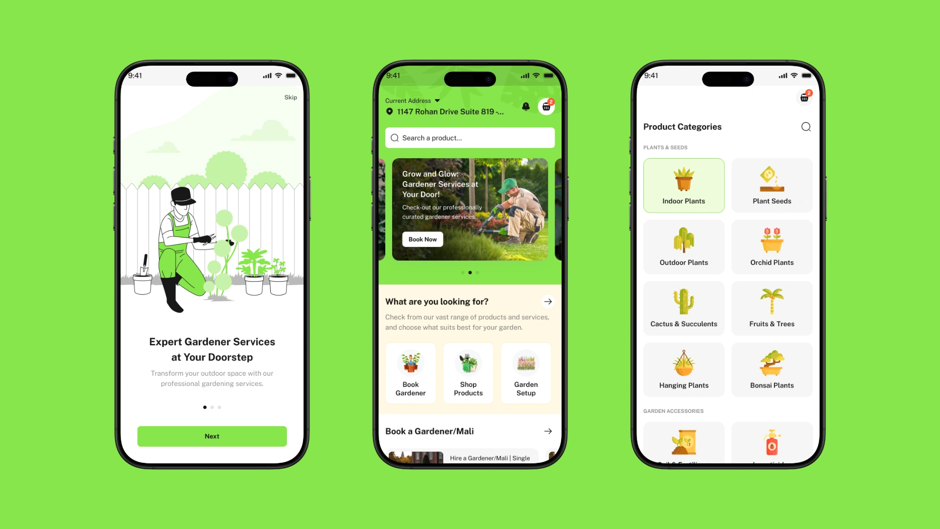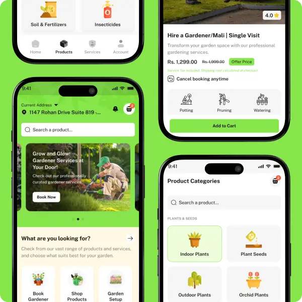 A one-stop app for purchasing gardening products and booking professional gardening services.